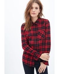 Forever 21 Plaid Flannel Button Down Shirt In Black Red Red Lyst