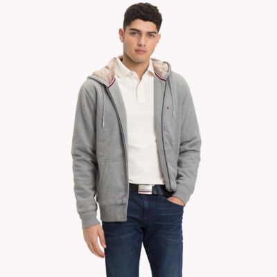 Tommy Hilfiger Grey - Basic Fur Lined Hooded Zip Through. Tommy Hilfiger boys sweatshirt. Mens Tommy Logo Hoody Sweatshirt.