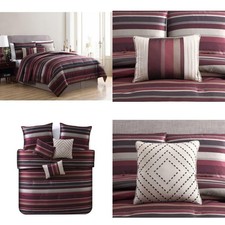Mainstays Princeton Stripe 7 Piece Comforter Bedding Set. Make your bedroom decoration quick and easy and guarantee that all of your pillows and blankets will match by buying them all together in one convenient setMainstays Multi-Color Geometric Stripe Preston 7-Piece Bedding Comforter Set Decorative Pillows IncludedFullQueen set includes. Available in FullQueen or King Size FullQueen Size.