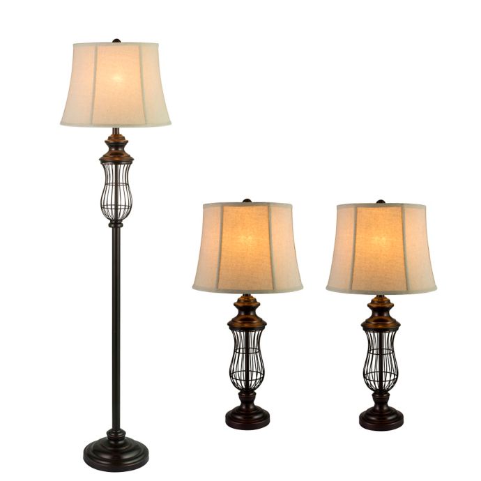 Fangio 3 Piece Urn Cage Lamp Set In Bronze Bed Bath Beyond