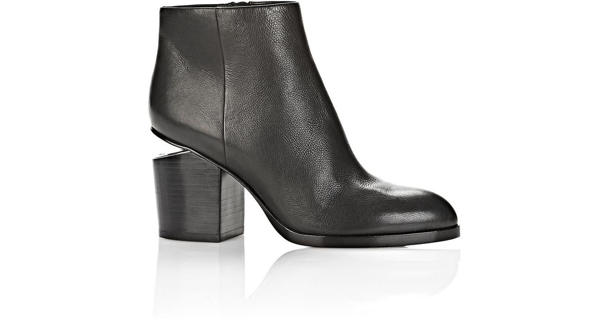 Free fast shipping worldwide and easy returns. Alexander Wang gives a wardrobe essential some signature edge in this almond-toe bootie spliced with a striking cutout heel. Beautiful classy edgy black bootie in soft luxurious leather.