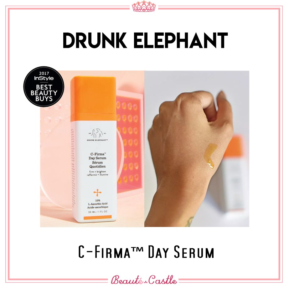 Drunk Elephant C-Firma Day Serum. Drunk Elephant These days potent Vitamin C Serums are all the rage and Drunk Elephants C-Firma Day Serum is an award winning super potent formula that combines Vitamin C with the powerful anti-aging ingredient ferulic acid to diminish the appearance of lines. Drunk Elephant C-Firma Day Serum has a pH between 33 and 35 which is perfect.