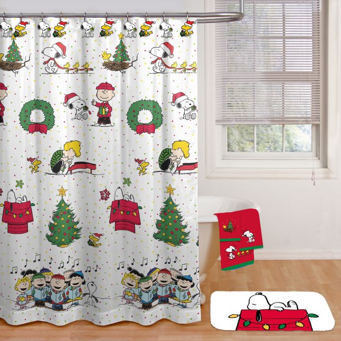 Ships free orders over 39. Bright and bold these towels accessories and shower curtain display Charlie Brown Linus Snoopy and the whole gang in their Christmas best. If you are looking to make your shower curtain the focal point of your bathroom you will love the current trends in bold botanicals and florals and colorful abstract designs.